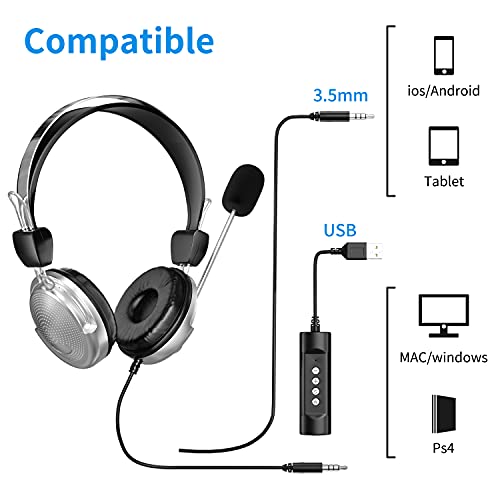 Plug and Play & Ampia compatibilità: le cuffie jack da 3,5 mm/USB non richiedono un driver, ma sono collegate direttamente a un dispositivo compatibile con USB. Ampia compatibilità con Windows 2000/7/8/10/XP/Vista, Mac OS X, iOS, Android, Tablet PC.