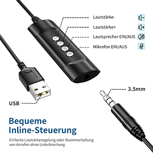 Newaner Cuffie USB/3.5mm Cablate per PC con Microfono cancellazione rumore controllo volume, auricolare con filo, wired headset per Skype Telefono Seminario Web Chiamare Chat Conference Call Center