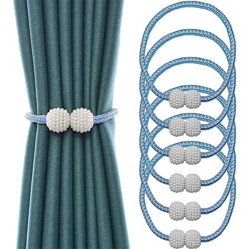 Newaner Fermatende magnetici per Tenda 6 Pezzi, con Perle Decorative, per Tende Piccole, Sottili o Trasparenti, Fermatenda (Blu)