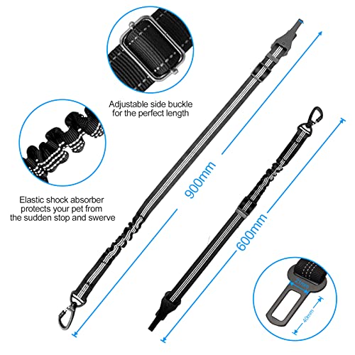 Newaner 2 pezzi Cintura di Sicurezza per Cani, 3 in 1 Multifunzione Cintura Sicurezza Cani, Regolabile in Nylon Riflettente Materiale E Forte Moschettone, per Tutti Cani di Taglie Medio Grandi.