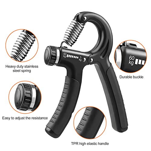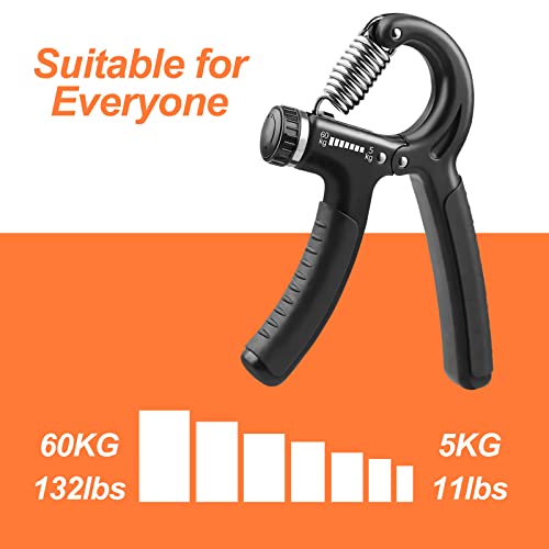 【Resistenza regolabile】 L'gripper mano può essere regolata tra 5 kg e 60 kg e sulla parte anteriore dell'impugnatura è presente un segno di gripper mano, che può essere regolato secondo necessità. La connessione a molla è sicura, solida e durevole, non facile da danneggiare. Ottimo per anziani, uomini adulti, donne e adolescenti.