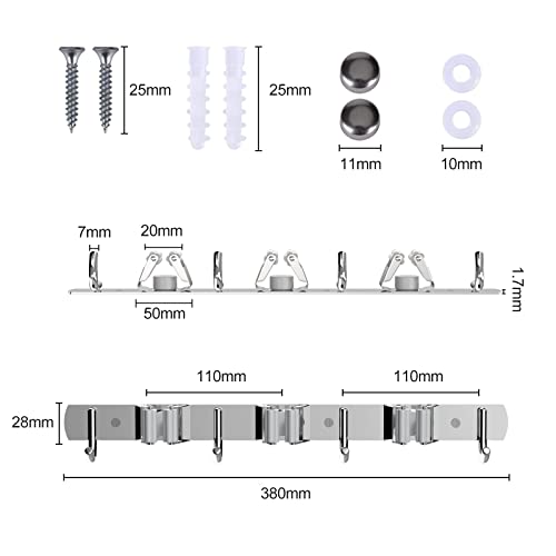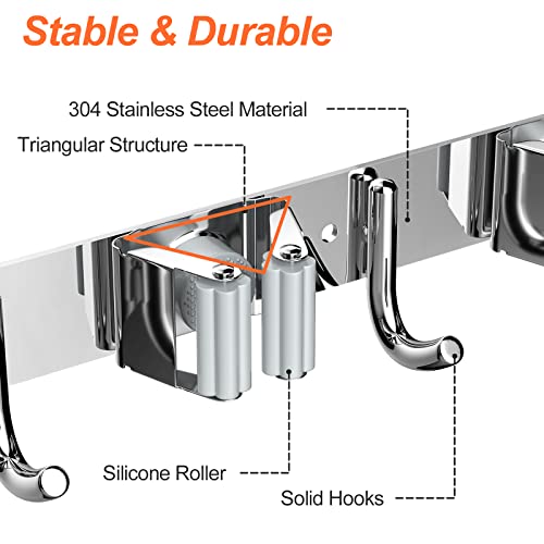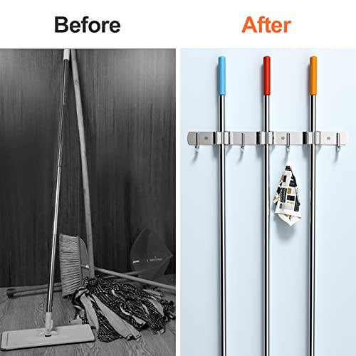 【Ampia applicazione】 La portascope adesivo in acciaio inossidabile è perfetta per cucina, armadio, ripostiglio, garage, ufficio, giardino, ecc. Organizza facilmente scopa, mocio, straccio e altro.