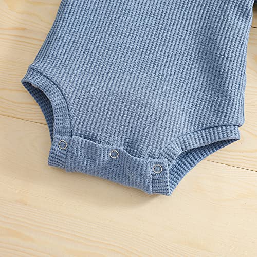 Newborn Baby Boy Girl Clothes Ribbed Knitted Cotton Romper Bodysuit Hooded Tops Long Trousers Fall Winter Outfit (Blue, 12-18 Months)