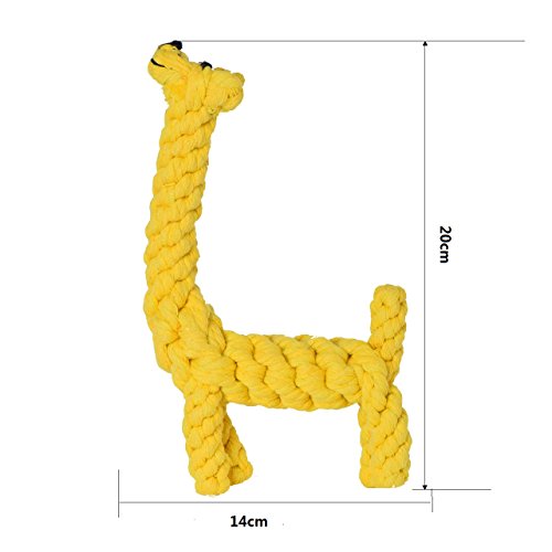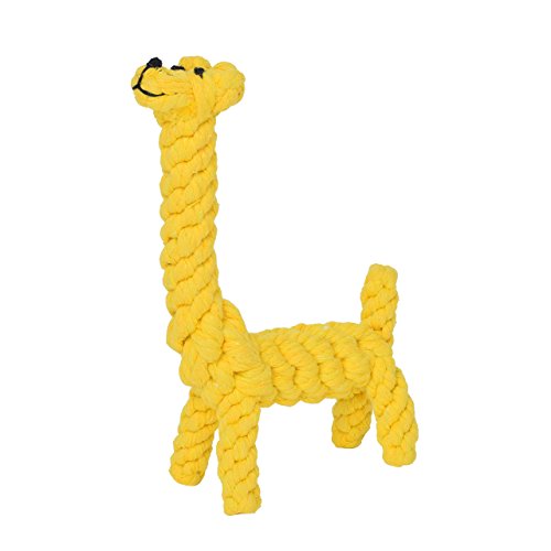 Newcomdigi Giocattolo Dentizione per Cani Gatti Corda in Cotone Intreccaita a Forma di Giraffa Massaggia Denti Pet Giocattoli Resistente Durevole - Giallo