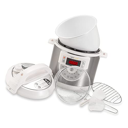 Newcook - Pentola Programmabile Delicious Bianca, Elettrica con Voce, 15 Funzioni, 1000W, Capacità 6 l, 4 Livelli di Pressione e Vasca in Ceramica. Include Accessorio per Friggere