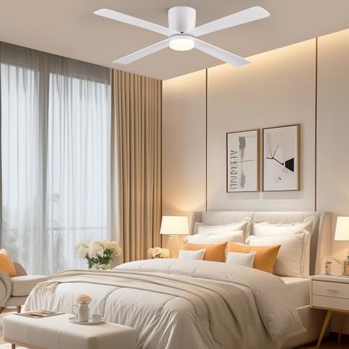 Newday 122cm Ventilatori da Soffitto con Luci e Telecomando Bianco, LED Ventilatore da Soffitto Silenzioso con Motore DC, Lampadario con ventilatore da soffitto Reversibile per Camera da Letto Cucina