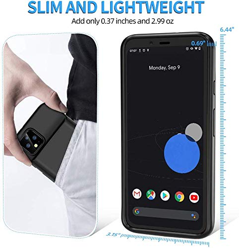 【5000 mAh POTENZA EXTRA】 La custodia ricaricabile per Google Pixel 4 XL incorporata in una batteria durevole da 5000 mAh ai polimeri di litio, raddoppia la durata della batteria. la custodia batteria esterna per Google Pixel 4 XL supporta cuffie parafulmine. Ottimo per utenti pesanti e viaggi.