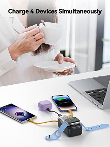 Caricabatterie per orologio e telefono Apple: Il power bank con modulo caricabatterie magnetico integrato per Apple watch, due cavi e porta usb c, consente di alimentare 4 dispositivi contemporaneamente. Compatibile con Apple Watch serie 8/7/6/5/4/3/2/1/SE/Ultra, iPhone 14 Pro Max/14 Plus/14 Pro/14/13/12/11 Pro max mini anche altri iPhone, Airpods, iPad, Samsung S23 Ultra/S23 Plus/S23/S22/S21/S20 e così via.