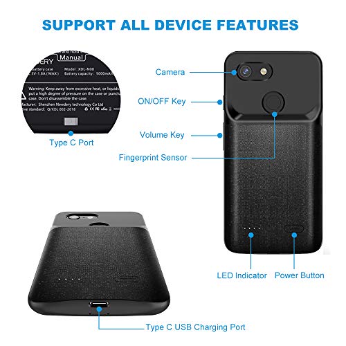 NEWDERY - Custodia per batteria Google Pixel 3, 4700 mAh, sottile e estesa con lunette rialzate in TPU, ricaricabile, compatibile con Google Pixel 3 (non per Pixel 3A)