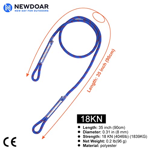 NewDoar Cavo Prusik cucito occhio-a-occhio da 8 mm (5/16") multiuso per arrampicata all'aperto, corda arborista alpinismo 90 cm/1 pezzo