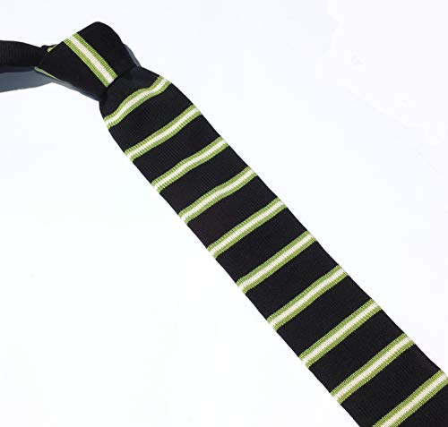 Neweave MILANO - Cravatta a maglia, 100% COTONE a righe, MADE IN ITALY (Nero-Verde)