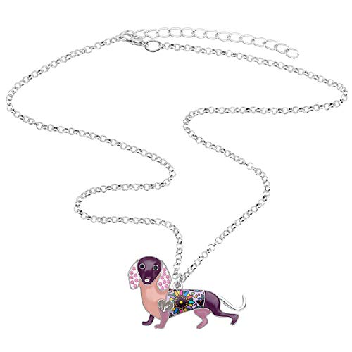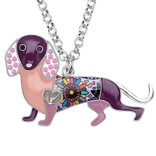 NEWEI Collana Cute Bassotto Smalto Strass Orecchie Bassotto Cane Collana Gioielli (Viola)