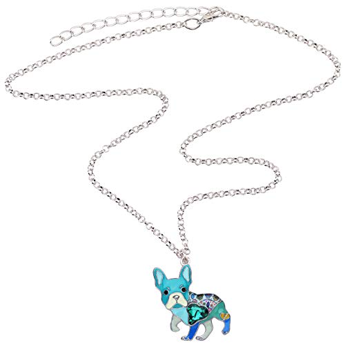 NEWEI Delicato smalto francese Bulldog collana ciondolo strass cane gioielli per donne ragazze fascino, Smalto
