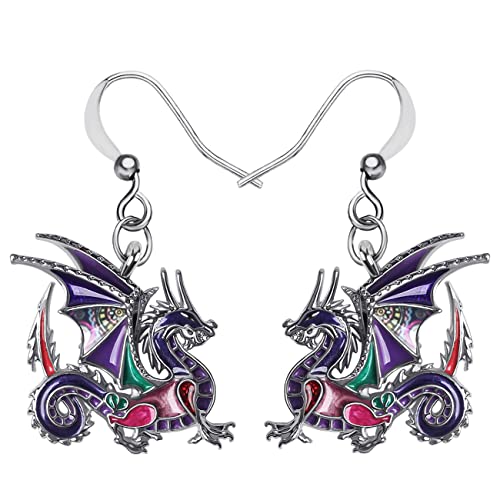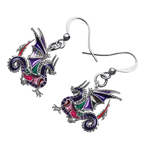 NEWEI Fantasia Smalto Drago Orecchini Pendenti Cute Draghi Regali Drago Gioielli Charms Per Le Donna Bambina (Orchidea)