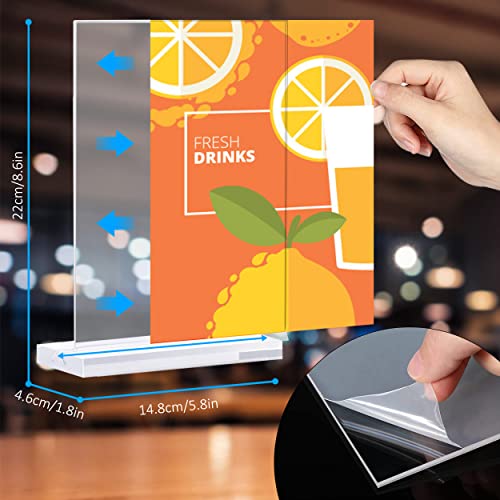 Acrilico ad alta definizione: il supporto per cartelli in acrilico di alta qualità è realizzato in materiale acrilico liscio, ultra trasparente, ad alta resistenza, eccellente e resistente ai graffi, comodo per inserire le tue immagini pubblicitarie e per trasmettere la tua pubblicità ai tuoi clienti.