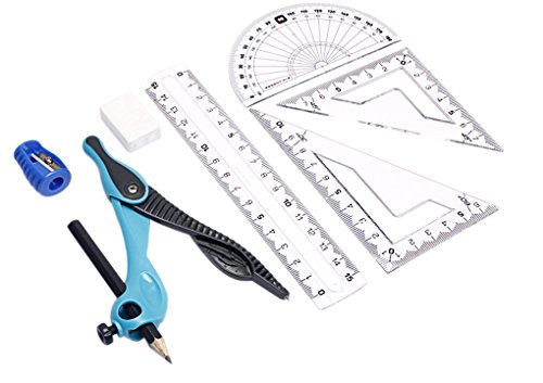 BAO CORE Newest Student Study Exam Pencil Compass With Pencil 8PCS Geometry Set With Ruler Set Squares Protractor Sharpener Eraser Educational Supplies-Blue