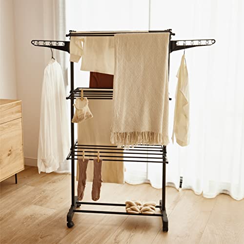 NEWLUX - Stendibiancheria Verticale Nero con Ruote e 4 Doppi Piani. Stendino Verticale salvaspazio Pieghevole, Estensibile, Sia per Interni Che Esterni, sopporto per Piccoli Oggetti. 15M di stendino