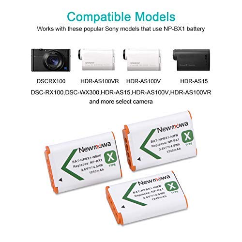 Newmowa 3-Channel USB Caricatore Rapido per Sony NP-BX1 / M8, NP-BY1 e Sony DSC-RX100, DSC-RX100 II, DSC-RX100M II, DSC-RX100 III, DSC-RX100 IV, DSC-RX100 V, DSC-RX100 VII, HDR -CX405