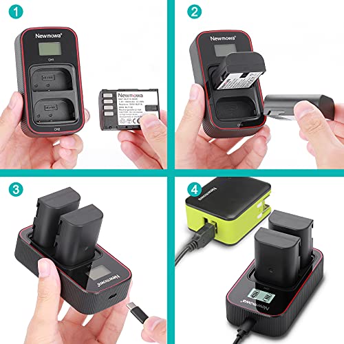Newmowa DMW-BLF19 DMW-BLF19E Batteria di ricambio (confezione da 2) e display LCD intelligente Caricatore doppio USB per Panasonic DMW-BLF19 DMW-BLF19E e Panasonic DMC-GH3,DMC-GH4,DMC-GH5,DC-GH5S