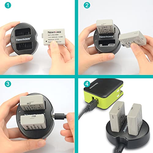 Newmowa Doppio Caricatore USB per Canon LP-E5 Canon EOS Rebel XS Rebel T1i Rebel XSi 1000D 500D 450D Kiss X3 Kiss X2 Kiss F