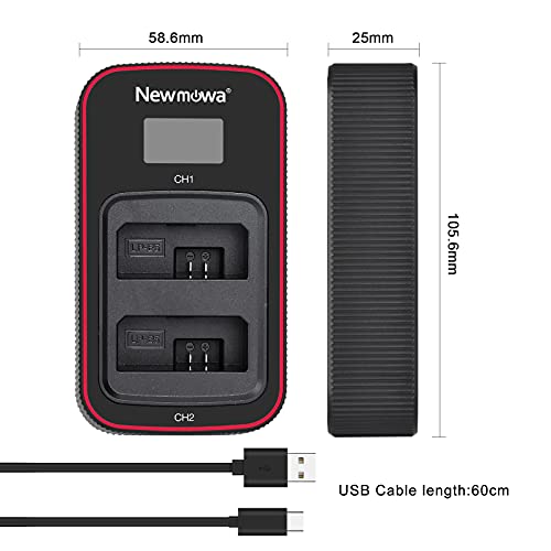 Newmowa LP-E5 Batteria di ricambio (confezione da 2) e display LCD intelligente Caricatore doppio USB per Canon LP-E5 e EOS Rebel XS Rebel T1i Rebel XSi 1000D 500D 450D Kiss X3 Kiss X2 Kiss F