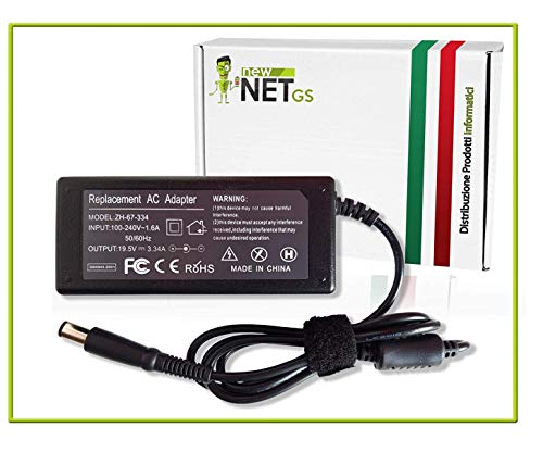 Newnet Alimentatore Caricabatteria Caricatore 19.5V 3.34A 65W per Pc Notebook dell Vostro V13 V130 V1300 V131 V131D V131R V13Z XPS M140 XPS M1530 XPS PP19L CONNETTORE Ext: 7,4mm INT: 5,0mm