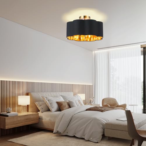 Newrays 3-Luci Lampadario da soffitto a semi-incasso, paralume in tessuto nero, moderno, vicino al soffitto, per camera dei bambini, camera da letto, cucina, corridoio, ingresso con 3 lampadine a LED