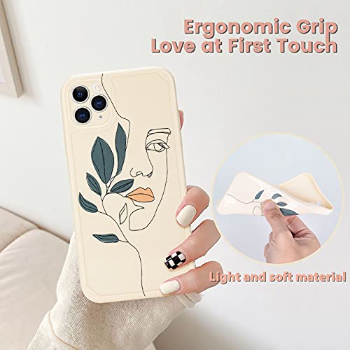 Newseego Compatibile con iPhone 11 PRO Max Carcasa, Disegno della Linea Artistica del Volto Umano Copertura para iPhone 11 PRO Max Case Cover in Morbido Silicone per iPhone 11 PRO Max-Foglia Verde