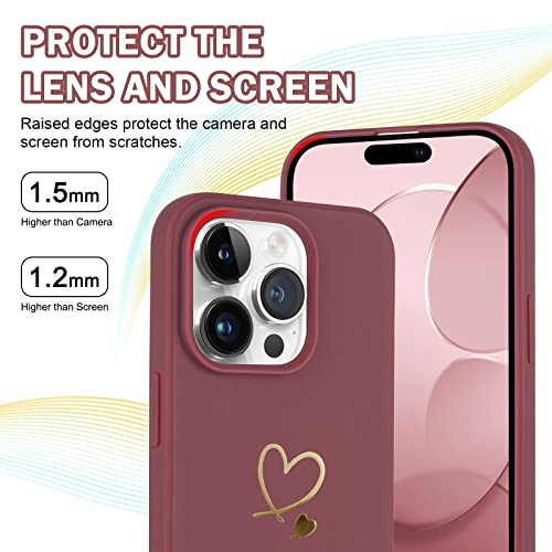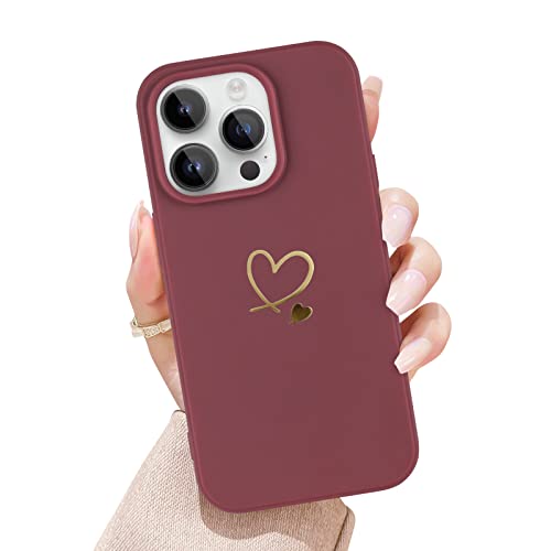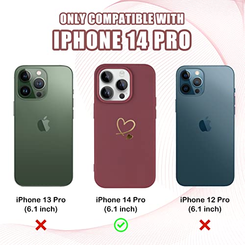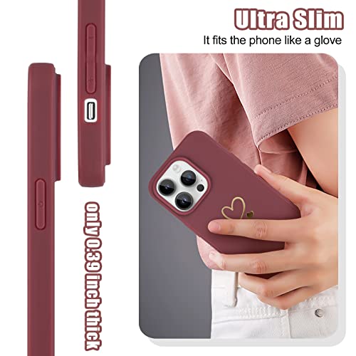 Newseego Compatibile con iPhone 14 PRO Cover, Simpatico Motivo Cuore d'oro Oro iPhone 14 PRO Cover Ragazze Donne Sottile Silicone Liquido Antiurto Custodia Protettiva per iPhone 14 PRO-Claret