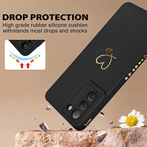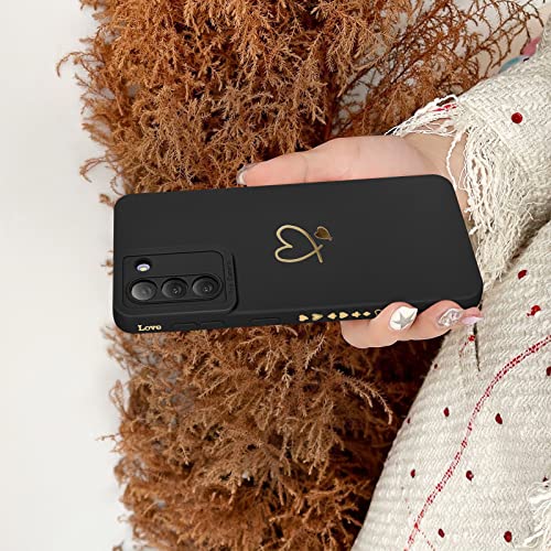Newseego Compatibile con Samsung Galaxy S21 Plus Cover, Cute Gold Love Heart Pattern Donne Ragazze Morbido Silicone Liquido Protezione Fotocamera Cornice Laterale per Samsung Galaxy S21 Plus-Nero