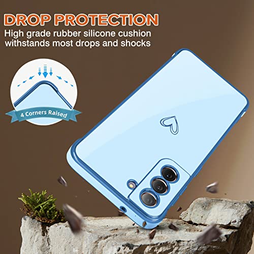 Newseego Compatibile con Samsung Galaxy S21 Fe 5G Cover Ragazze Donne, Custodia Protettiva Antiurto Silicone con Simpatico Motivo Cuore d'Amore Golden Edge Cover per Samsung Galaxy S21 Fe-Blu