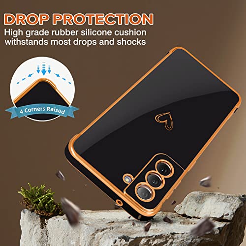 Newseego Compatibile con Samsung Galaxy S21 Fe 5G Cover Ragazze Donne, Custodia Protettiva Antiurto Silicone con Simpatico Motivo Cuore d'Amore Golden Edge Cover per Samsung Galaxy S21 Fe-Nero