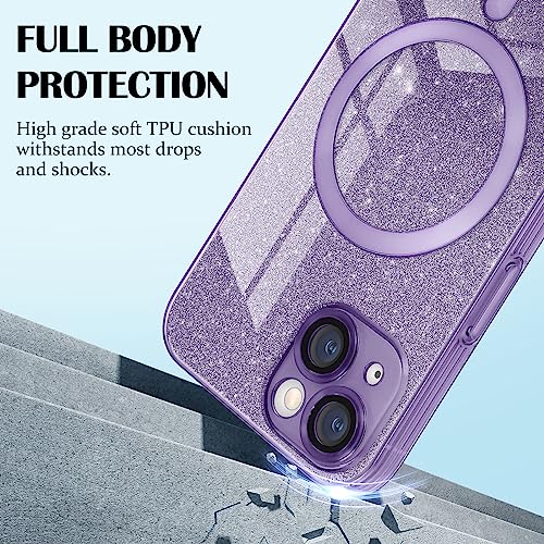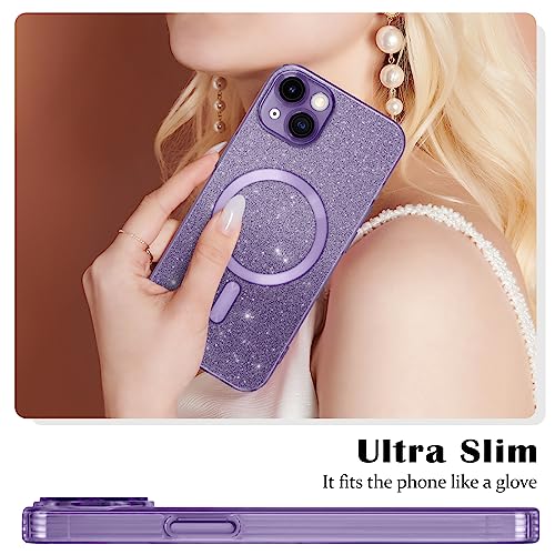 Newseego Cover per iPhone 13 Glitter per Ragazze Donne [Compatibile con MagSafe], Custodia Magnetica Carino Brillantini TPU Morbido Antiurto Protezione Fotocamera Cover per iPhone 13 -Viola