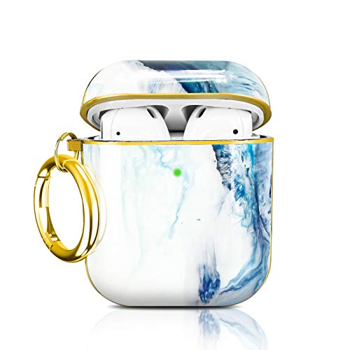 Newseego Cover protettiva compatibile con AirPods 1&2, elegante marmorizzata Airpods custodia antiurto con portachiavi in metallo accessori per AirPods adatta a ragazze ragazzi, blu bianco