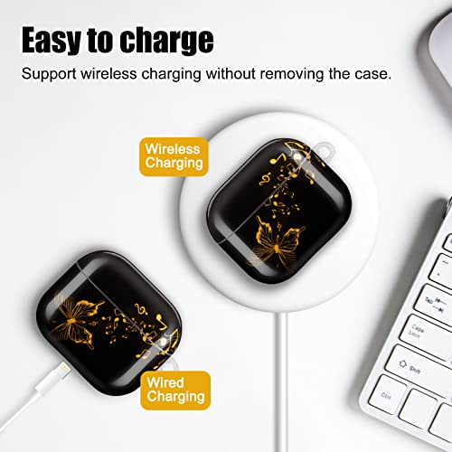 Newseego Custodia per Airpods 3 con Portachiavi e Cordino, Cute Gold Butterfly Design Pattern Airpods 3 Custodia per Ragazze Donne Custodia Protettiva in TPU Morbido Antiurto per Airpods 3-Nero