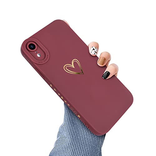 Newseego Custodia Compatibile con iPhone XR,Morbido Silicone Liquido Bronzing Love-Heart iPhone XR Custodia Cute Love-Heart Frame all-Inclusive Lente Flessibile Antiurto Custodia Protettiva iPhone XR