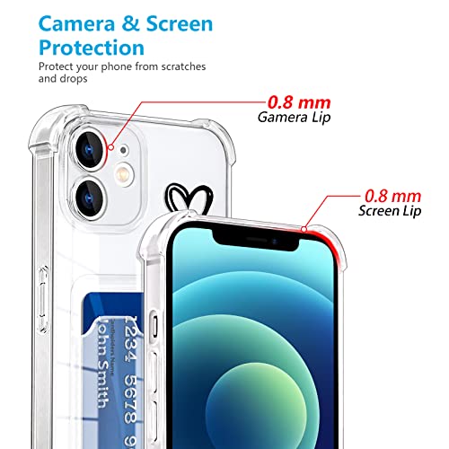 Newseego Custodia Compatibile con iPhone 12, Porta Carte Trasparente TPU iPhone 12 Custodia Sottile Morbida Protettiva Antiurto Trasparente con Slot per Schede e Bel Motivo Hollow heart