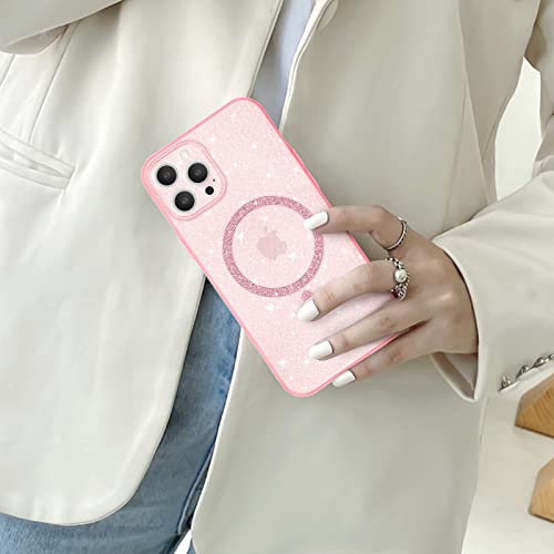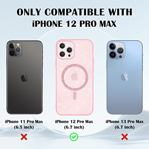 Newseego Custodia per iPhone 12 PRO Max Glitter Trasparente Ragazze Donne[Compatibile con MagSafe], Cover Magnetica Telefono Scintillante Antiurto Protezione Fotocamera Cover iPhone 12 PRO Max-Rosa