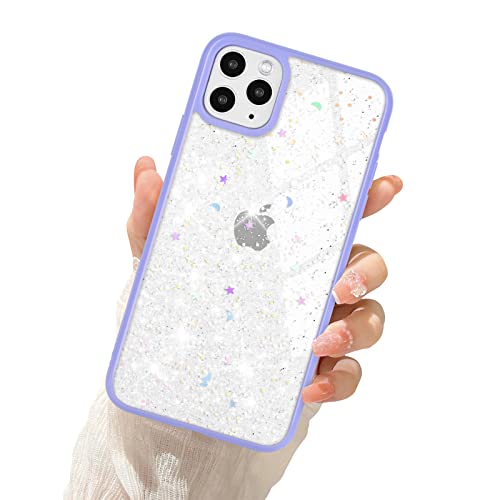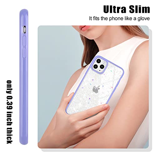 Newseego Custodia Trasparente Glitter Compatibile con iPhone 11 Pro Max per Ragazze Donne, Brillante Custodia per Telefono Morbida TPU Antiurto Protettiva Paraurti Cover per iPhone 11 Pro Max-Viola