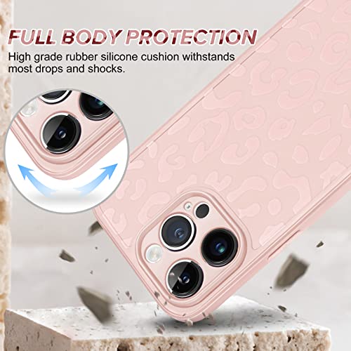 Newseego iPhone 14 PRO Max Cover per Ragazze Donne, Carino Stampa Leopardo Custodia per Telefono Morbido Silicone Fotocamera Protezione Antiurto Bumper Cover per iPhone 14 PRO Max-Rosa