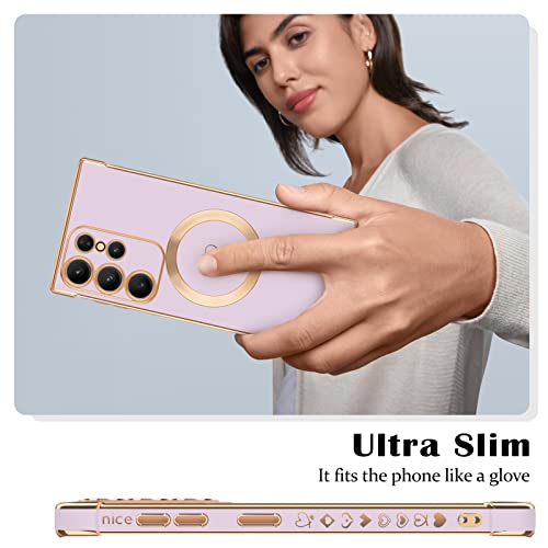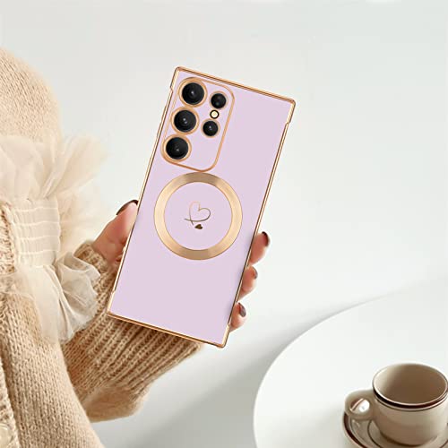 Newseego Magnetica Custodia per Samsung Galaxy S23 Ultra[Compatibile con MagSafe], Ragazza Donna Simpatico Motivo Cuore Placcatura Bordo Silicone Antiurto Protettiva Cover per Samsung S23 Ultra-Viola