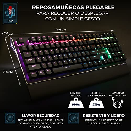 Newskill Serike Switch Red - Tastiera meccanica Gaming con poggiapolso pieghevole incluso (tasti con registrazione macro, 20 modalità di illuminazione RGB) - Colore Nero