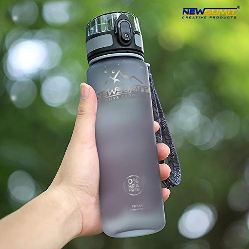 NEWSUMIT Borraccia Sportiva Superiore - Rapido Flusso d'Acqua - Facile Aperto Top 1 Click - Tritan BPA Free - Tutto l'uso - Tennis - Calcio - Ciclismo - Casa e Ufficio. (Grigio, 500ml - 17oz)