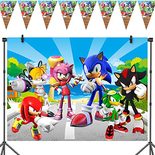 Newtic 53PCS Sonic Feste Decorazioni, Festa di Compleanno Decorazioni,Include tazze, tovaglia, piatti, tovaglioli, palloncini, striscione, sfondo, per 10 bambini