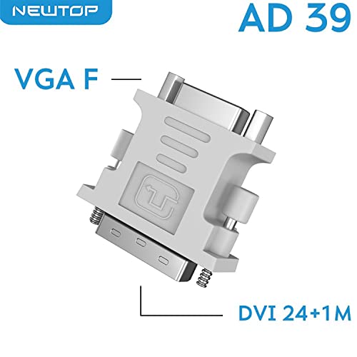N NEWTOP Adattatore AD39 Convertitore Digitale DVI-D Maschio (24+1) Dual Link su VGA Femmina (15 pin) Analogico su Connettore M-F Segnale Standard per Cavo Monitor Computer TV (1, Bianca)