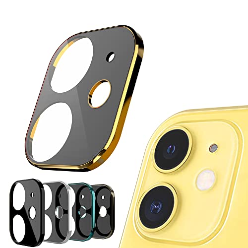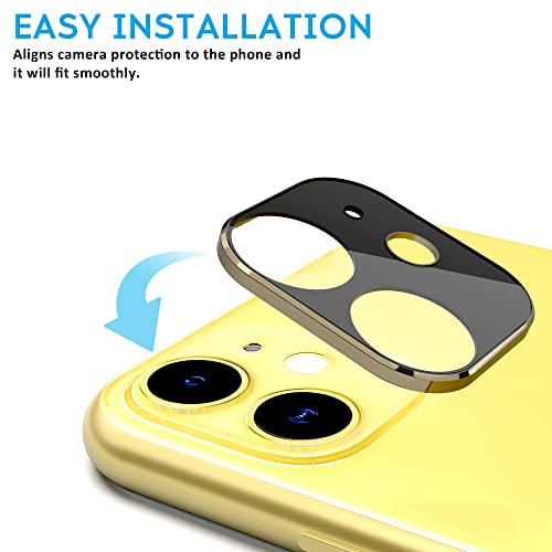 N NEWTOP Camera GLASS Compatibile con iPhone 11, Film Vetro Temperato Frame Alluminio Nero Cornice Colorata Protezione Copertura Fotocamera Posteriore Lenti Anti Urto Graffio (Gold)