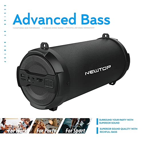 N NEWTOP Cassa Musicale SP14 Speaker Box Tubo Bluetooth TWS Nero Tracolla Altoparlante Audio Wireless Portatile Super Bassi Radio FM AUX Lettore Musica USB Jack 3.5mm Micro SD TF Ricaricabile