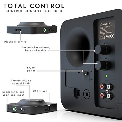 【 REGOLAZIONI E INFO 】 Sul retro del subwoofer troviamo il tasto ON / OFF, l'input e output RCA per i satelliti e molto importante la regolazione dei Bassi e degli Acuti molto comodo per regolare il suono come meglio preferite. I 2 satelliti sono orientati verso l'alto per divulgare il suono al meglio in ogni ambiente. Regolatore del volume sul controller grande e molto sensibile!