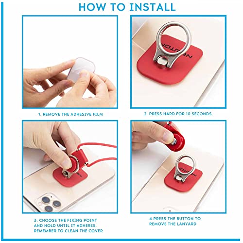 【 Materiale e Info】 Il cordino è in classico tessuto intrecciato, la placchetta con adesivo è in plastica e l'anello in metallo. L'adesivo rimane molto resistente, suggeriamo di metterlo dietro una cover liscia e pulita per una presa perfetta e durante l'applicazione premere con forza per 30 secondi. Il corpo che include anello e fissaggio del laccio sono ruotabili e flessibili a 360 gradi.