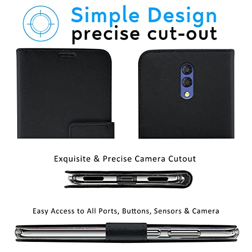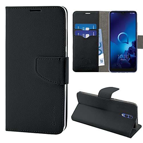 N NEWTOP Cover Compatibile per ALCATEL 1X 2019, HQ Lateral Custodia Libro Flip Chiusura Magnetica Portafoglio Simil Pelle Stand (Nero)